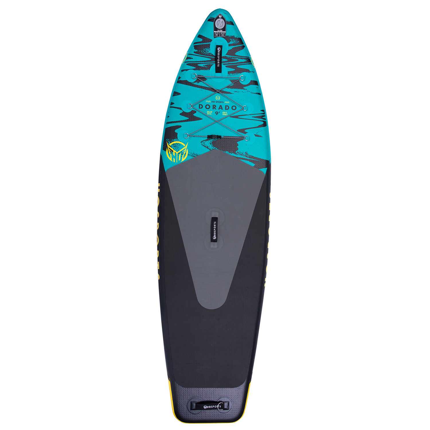 The Dorado 9’ iSUP is a smaller sized paddleboard designed for riders 110 lbs and under. This scaled down version of our well performing Dorado shape has all the same features as its full sized big brother, but in a size that was made specifically for those smaller riders. The compact size of the Dorado 9’ makes it easy to carry and maneuver while the marine grade deck pad delivers a non-slip traction surface that is also comfortable underfoot. Another awesome feature of the Dorado 9’ is the double-x bungee zone which allows you to store gear like life jackets, dry bags, etc. on the front of your paddle board. The tool-less, slide-in center fin is easy to use and provides excellent tracking and lateral stability. Also included with the Dorado 9’ is the Strike aluminum, 3 piece adjustable paddle, a dual action hand pump with PSI pressure gauge and a carry strap for ease of transport and storage. Step onto the Dorado 9’…your destination is up to you. Quick Features: • Ideal for 110lb riders and under • Lightweight Design • Dropstitch Construction • Marine Grade EVA Deck Pad • 10cm(4in) single layer double sidewall • Slide-In Center Fin • Double X front bungee storage zone • Strike Adjustable 3 Piece Paddle • Carry Strap with Buckle • Dual Action Hand Pump with PSI pressure gauge included • Dual Layer Neoprene Padded Carry Handle • 2.5mm stainless D-rings • Always wear a Life Vest while using this product